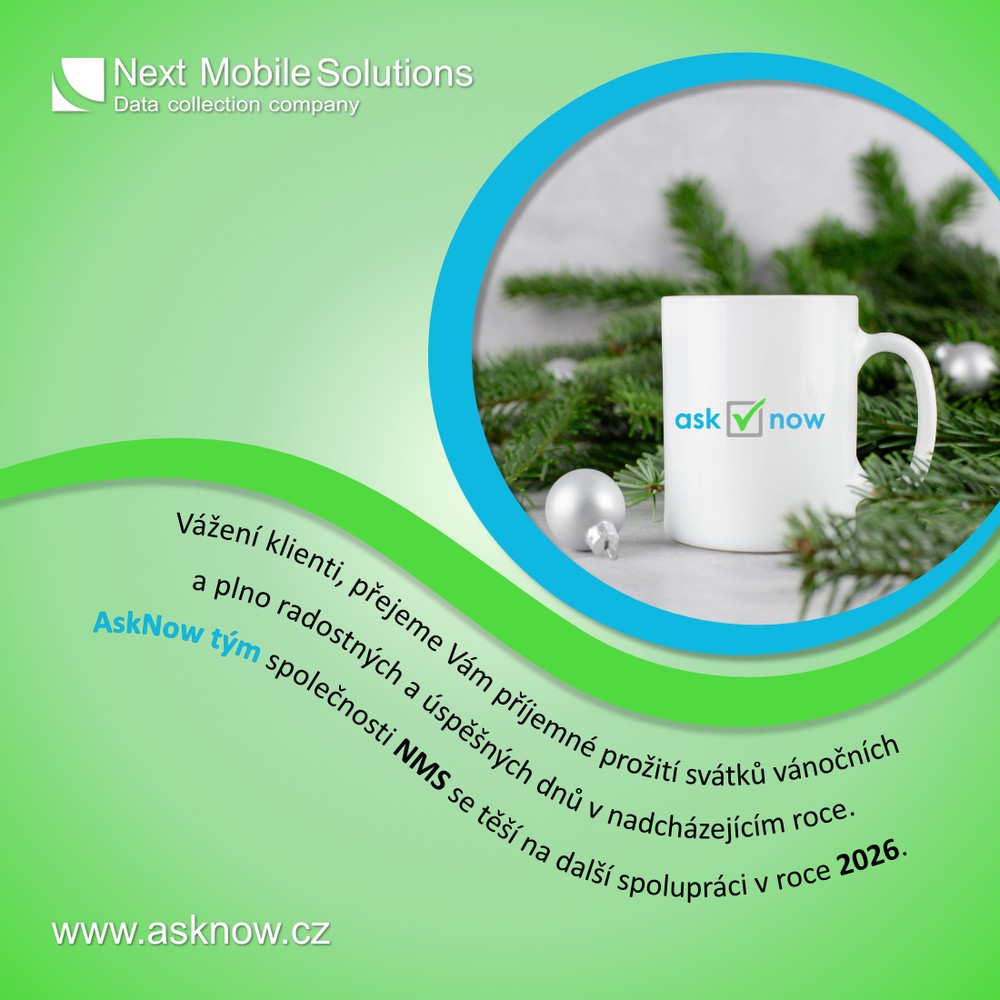 Děkujeme Vám za spolupráci a důvěru, s jakou využíváte naše AskNow služby. Věříme, že naše vzájemná spolupráce bude pokračovat i nadále. Přejeme Vám šťastné prožití vánočních svátků a vše dobré do nového roku 2022.